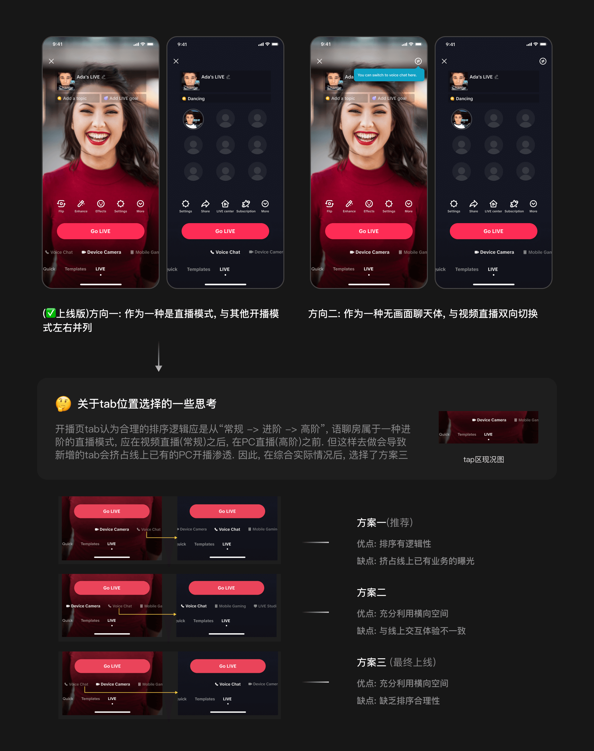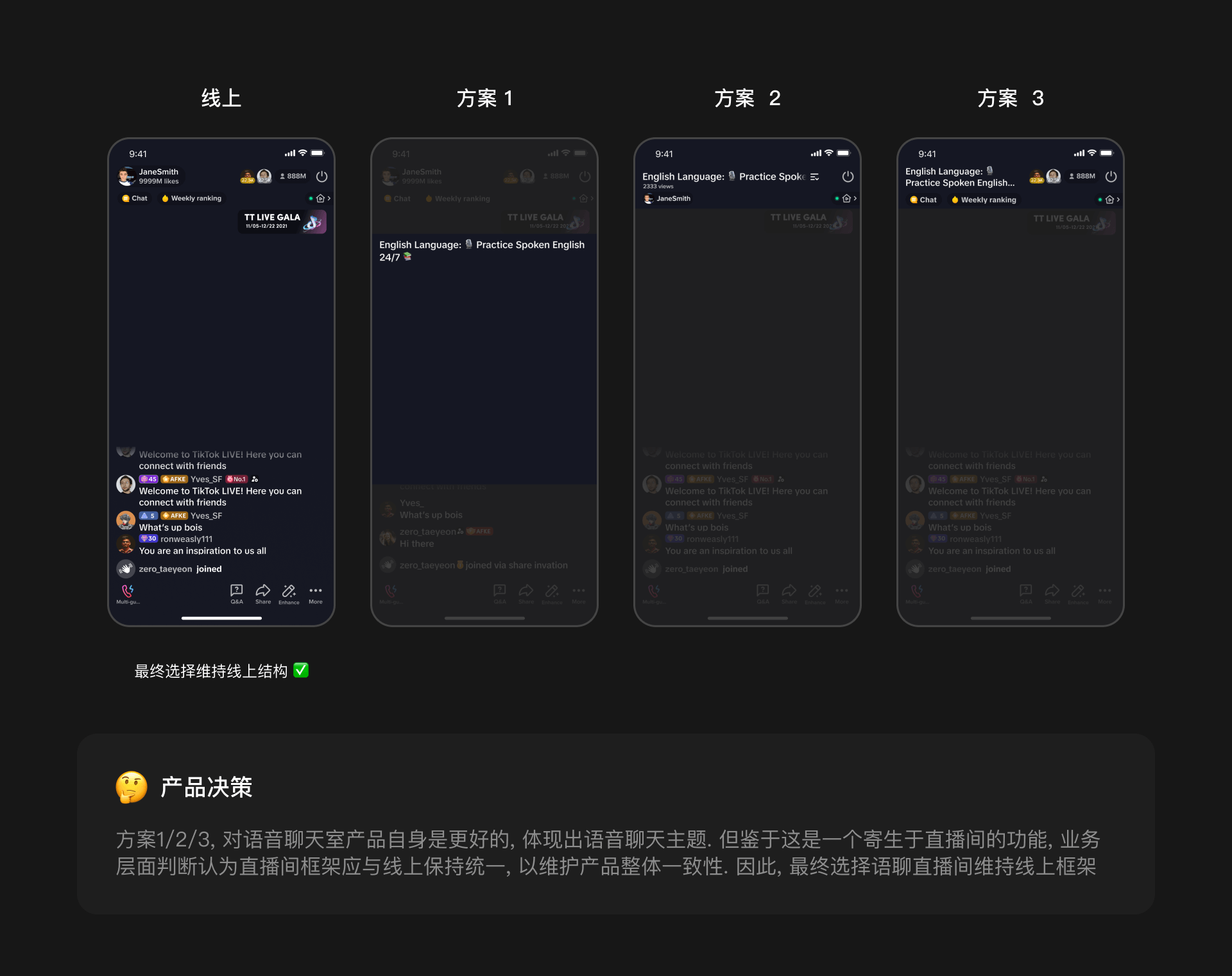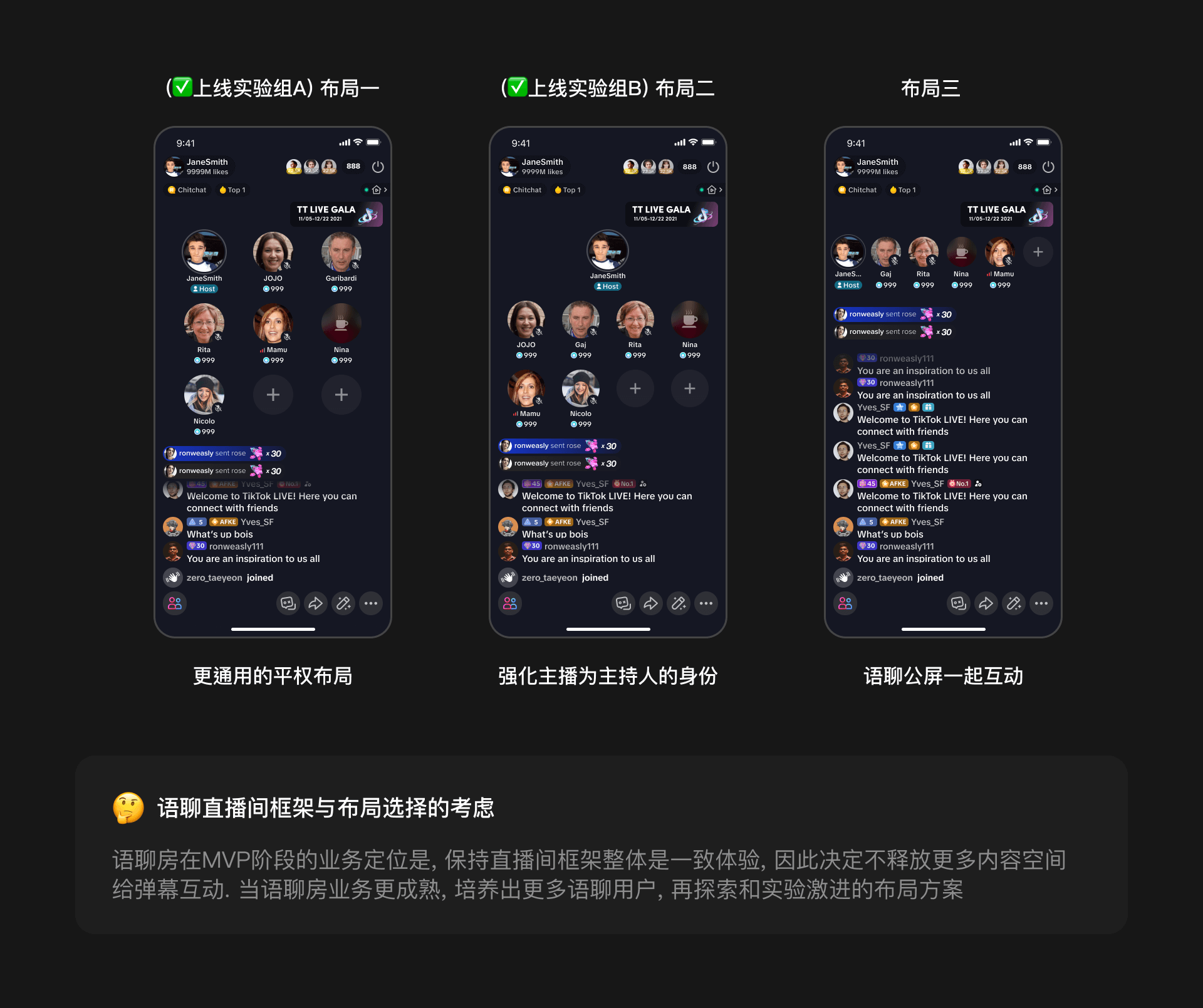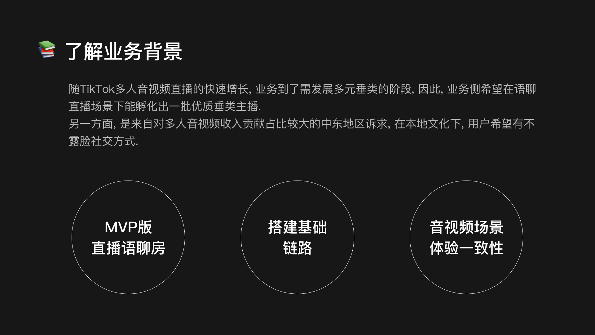 业务高速发展, 希望快速验证语音聊天房在TikTok LIVE 中的市场价值, 因此急需开发一款mvp版的语音聊天直播功能. 作为业务设计负责人, 我从设计核心点着手, 展开与业务就产品规划的方案探讨. 本项目在持续放量中, 仅中东地区头部主播放量实验中, 发现上线语聊房后, 对直播大盘的开播UV 提升了1.5%
